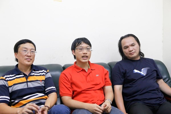 | Lê Nguyễn Vương Linh cùng bố (bên trái) và thầy giáo trước ngày du học Mỹ. Ảnh: Tiền Phong. |