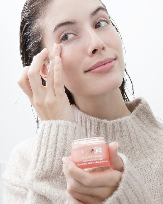 Với thành phần chính là bơ hạt mỡ, All About Eyes của Clinique giúp cấp ẩm sâu cho vùng da quanh mắt, hạn chế hình thành nếp nhăn. Khi thoa, kem nhanh chóng thấm sâu vào da, để lại bề mặt ẩm mượt. Ngoài ra, chiết xuất trà xanh góp phần giảm thâm và bọng mắt, mang đến cảm giác thư giãn tuyệt vời sau ngày dài mệt mỏi.