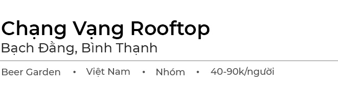Nằm khuất trong hẻm trên đường Bạch Đằng, Chạng Vạng Rooftop là nơi tôi thường lui tới sau giờ tan tầm để ngắm Sài thành chuyển mình về đêm. Như đúng tên gọi, quán mở cửa đón khách lúc chạng vạng, từ 18h đến nửa đêm.