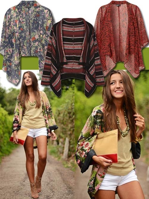 Người Nhật Bản chắc hẳn rất tự hào khi chiếc áo kimono truyền thống của họ là nguồn gốc cảm hứng để các nhà mốt sáng tạo nên chiếc áo khoác gây sốt trong mùa hè năm nay. Kiểu áo này có thiết kế rộng rãi rất thích hợp với khí hậu nóng nực của mùa hè và thường được in họa tiết rất bắt mắt.