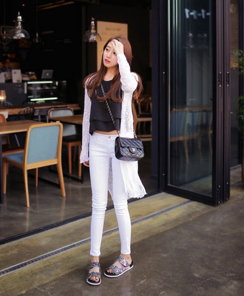 Cardigan dáng dài chỉ dành cho những cô nàng cao ráo như Hồ Ngọc Hà vì thế nữ ca sĩ cũng không bỏ lỡ kiểu áo cá tính này. Cardigan dáng dài dành cho mùa hè thường làm từ chất liệu cotton mỏng.