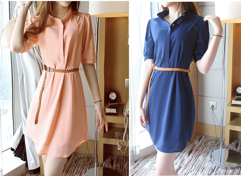 | Đầm voan tay lỡ, cổ sơ mi thanh lịch. |