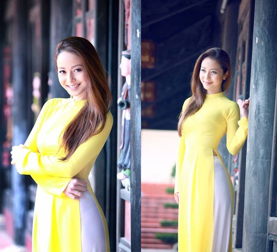 Đây cũng là kiểu tóc tuyệt xinh được Jennifer Phạm kết hợp cùng áo dài truyền thống.
