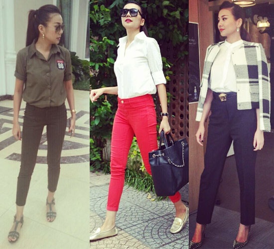 Ngọc Trinh, Hoàng Thùy Linh, Thanh Hằng để tóc đuôi ngựa gọn gàng, năng động khi dạo phố.