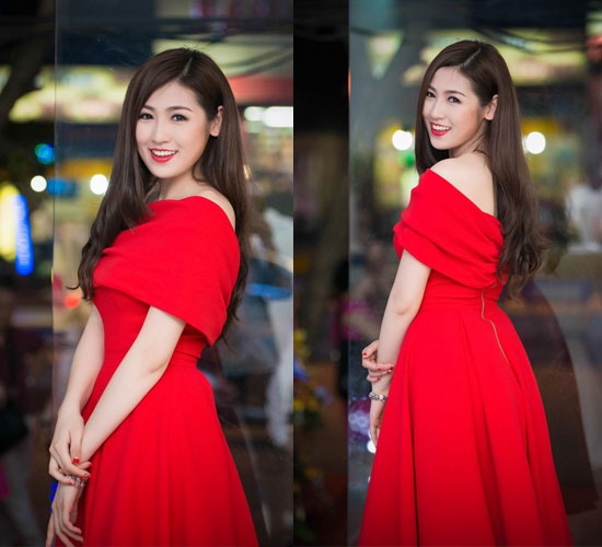 Làm MC cho chương một chương trinh tối ngày 14/12 vừa qua Ngọc Hân cũng chọn cho mình mái tóc dài thẳng tự nhiên và bộ áo dài đỏ nổi bật.