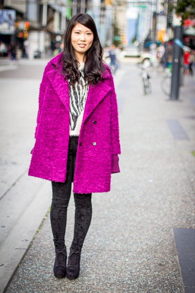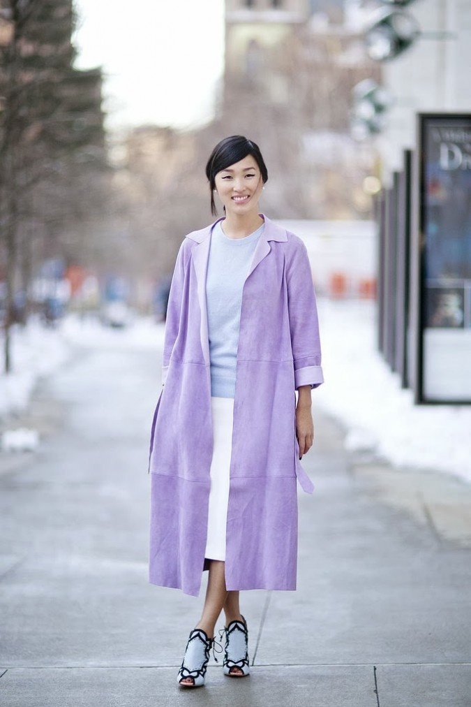 Tông tím lavender cũng gây sốt bởi độ mới mẻ cho thời trang áo khoác.
