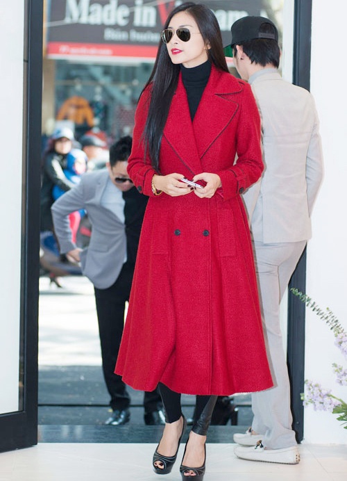 Ngô Thanh Vân rực rỡ với một mẫu áo khoác đỏ đậm chất classic.