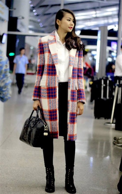 Thanh Hằng khiến các tín đồ thời trang phát sốt với kiểu áo khoác kẻ khỏe khoắn.