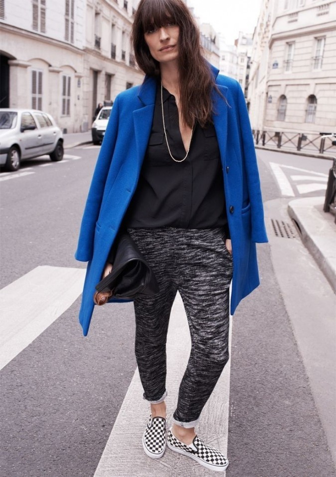 | Áo khoác xanh mix kèm giày canvas rất thích hợp các bạn gái cá tính |