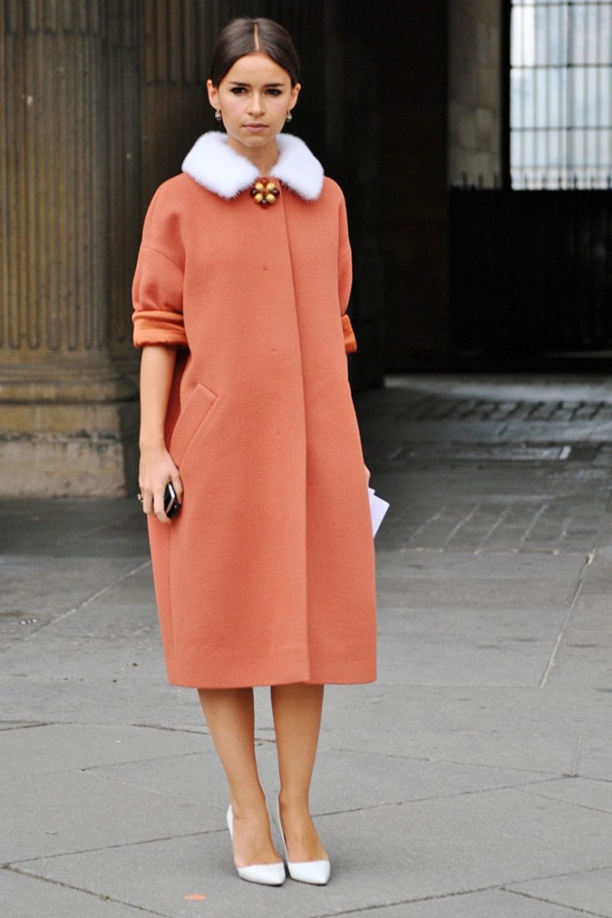 | Áo khoác cam cho phong cách tiệc tùng cuối năm rất sang trọng và ấm áp. |