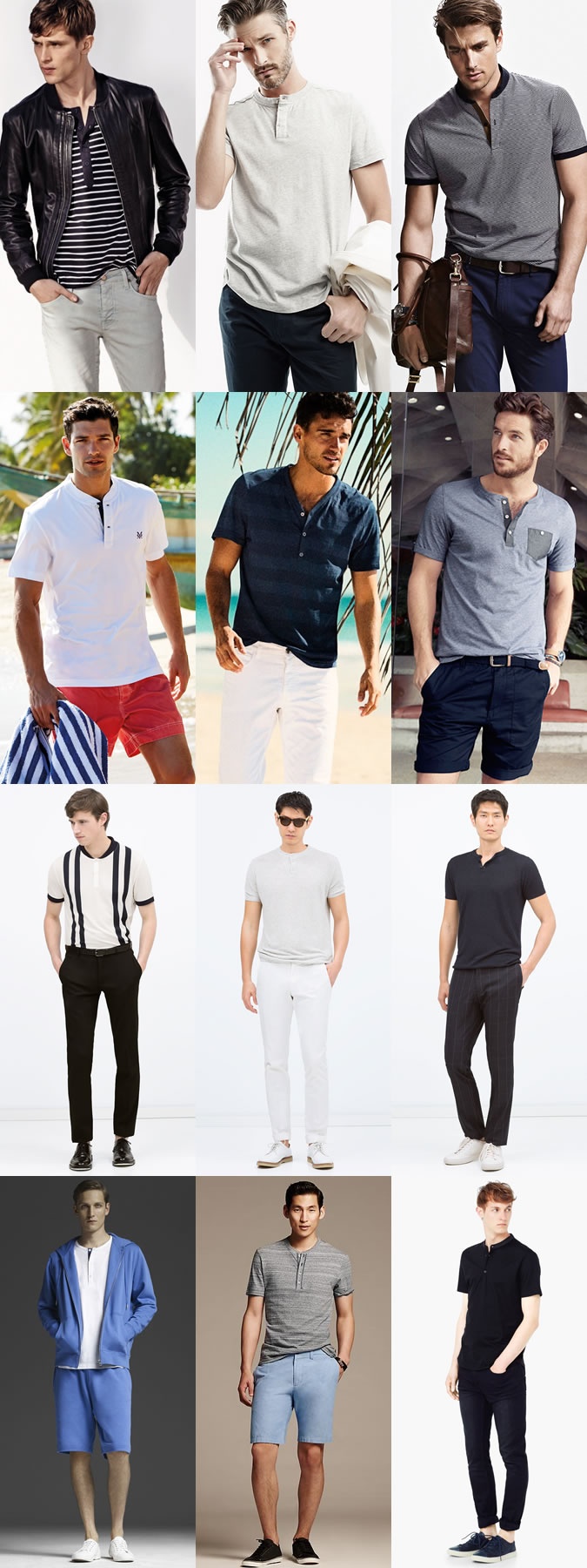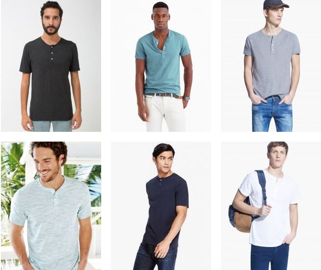 | Áo Henley ngắn tay được xem là trang phục cốt lõi trong mọi tủ đồ mùa hè của phái mạnh. Các màu Henley được ưa chuộng là trắng, kem, xám hay đen, với đặc điểm cổ tròn/tim với hàng cúc ngực thanh lịch. |