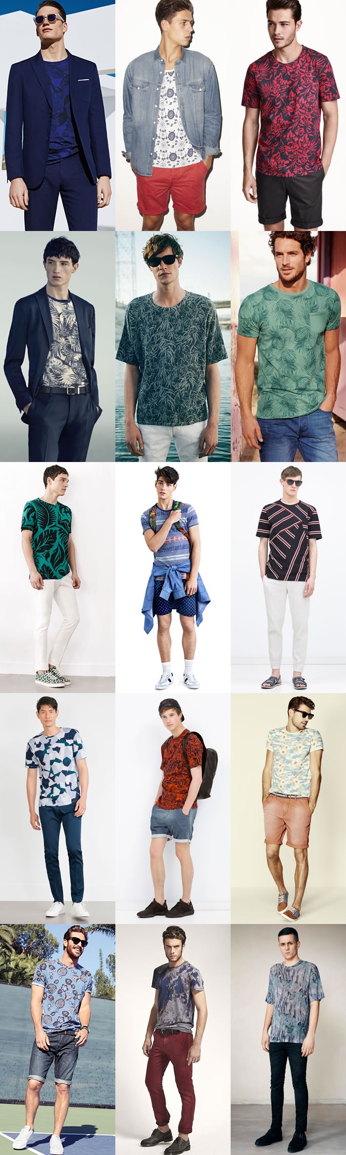 Không như nhiều người lầm tưởng, áo in họa tiết rất dễ kết hợp, với shorts, jeans tối hay sáng màu đều được. Các hoa văn nổi bật năm nay là hoa cỏ, khối hình học, Aztec…
