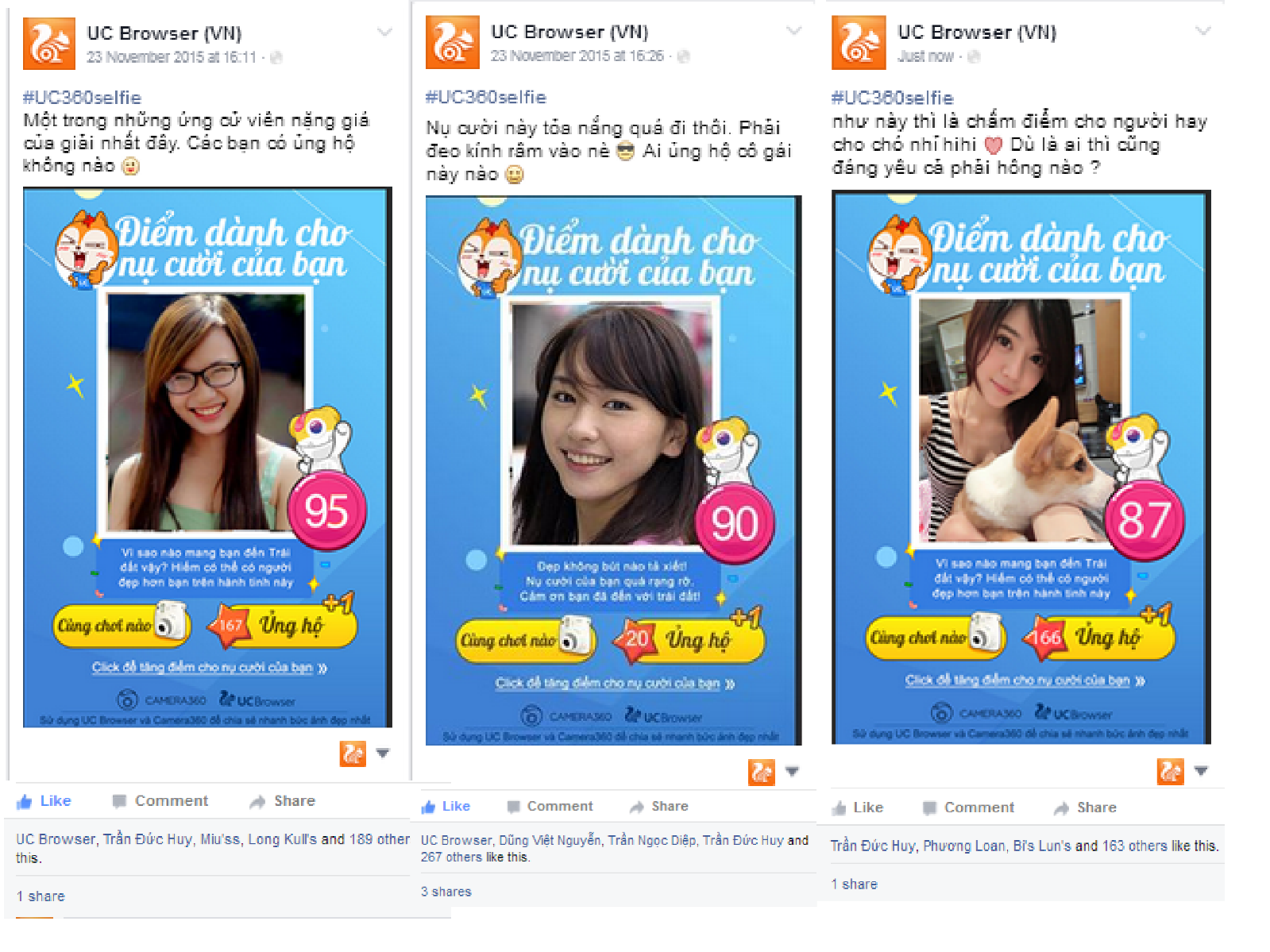Gần 10.000 bạn trẻ đã tham gia chương trình này, bạn có thể tham gia để mọi người được chiêm ngưỡng nụ cười của mình và giành giải thưởng cùng UC Browser và Camera360. Link tham gia http://bit.ly/1MDtYzF.