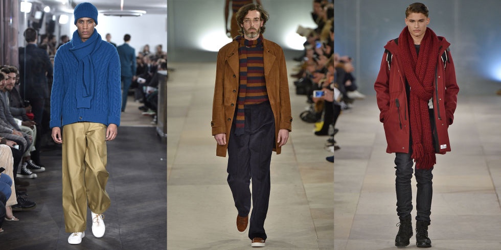 | Khăn đồng màu: Chọn một chiếc khăn đồng màu với áo không khiến nó trở nên mờ nhạt mà thậm chí còn là yếu tố thu hút sự chú ý bởi sự thú vị. Thiết kế từ trái sang: Richard James, Oliver Spencer, Christopher Raeburn |
