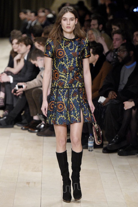 Boot cao tới gối và váy ngắn: Sự xuất hiện của một người mẫu nữ với trang phục nữ trên sàn diễn thời trang nam là một điểm nhấn của Burberry năm nay. Là một sự kết hợp kinh điển của thời trang nhưng combo váy ngắn và boot cao cổ đã lâu không xuất hiện. Đây là lựa chọn thích hợp cho những cô nàng yêu sự đơn giản nhưng vẫn đảm bảo được tiêu chí đẹp và thời thượng.