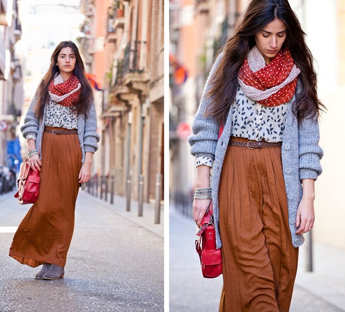 4. Chân váy maxi và cardigan