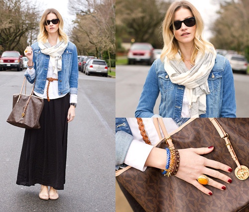 5. Chân váy maxi và áo khoác denim