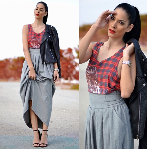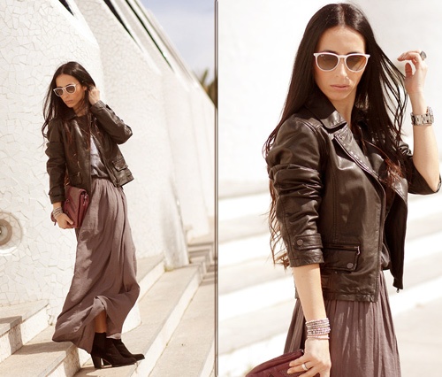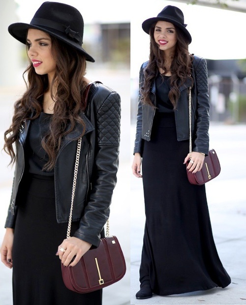 1. Váy maxi và áo da