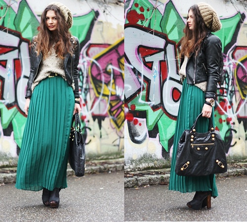 Với những ngày quá lạnh thì lựa chọn áo len mix kèm maxi và một chiếc áo da cũng là gợi ý hấp dẫn.