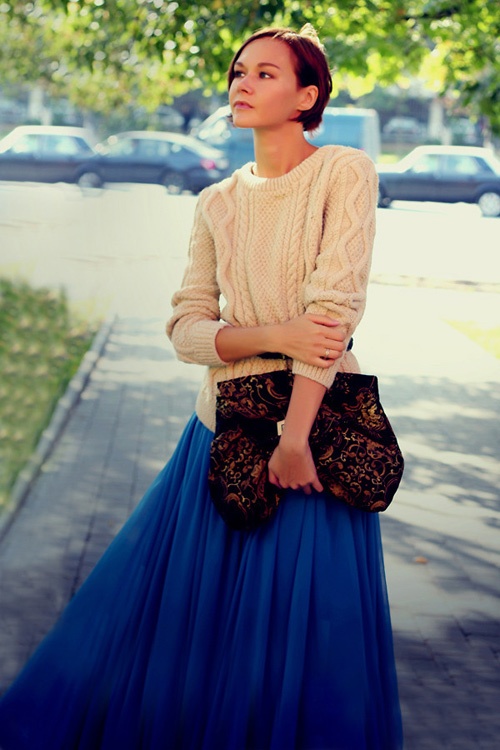 3. Chân váy maxi và áo len