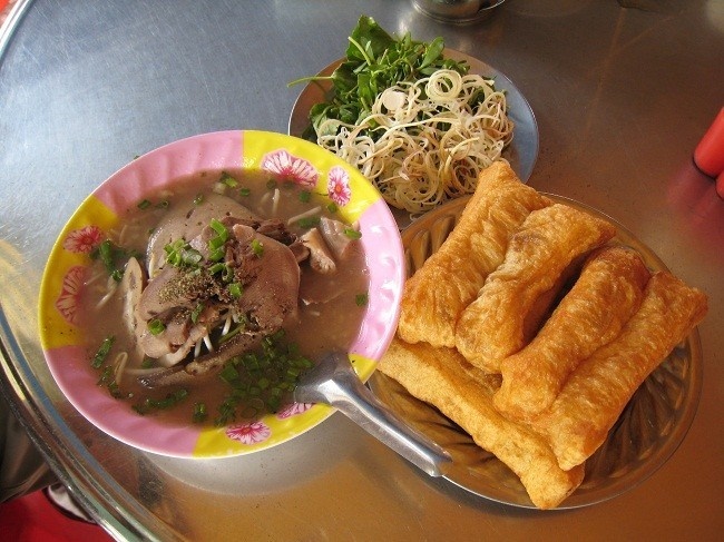 Khác với cháo đặc tại nhiều nơi, cháo lòng tại Cái Tắc là cháo lỏng, nước ngọt và rất thơm, thêm tim, gan, phèo, lưỡi, cật, thịt… Nước chấm được làm từ mắm nhỉ cao cấp, thêm chanh, ớt tạo nên hương vị đặc biệt. Cháo cũng được ăn kèm rau thơm, rau đắng, bắp chuối để vừa thêm mùi vị, vừa át mùi tanh của lòng. Ảnh: tongphuochiep-vinhlong |