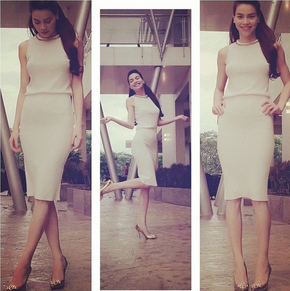 Với vóc người mảnh mai, kiểu váy này giúp tạo đường cong cho Hà Hồ hiệu quả đồng thời tăng nét thanh lịch cho người mặc.