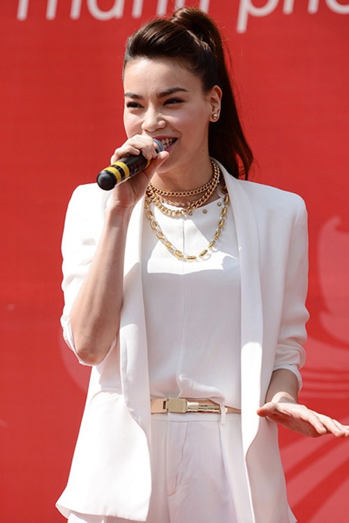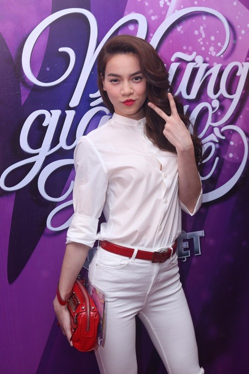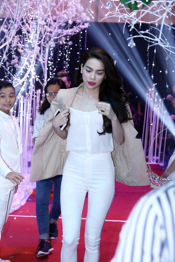 | Sơ mi trắng theo chân Hà Hồ nổi bật trên sân khấu. |