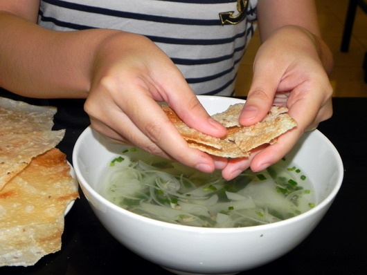 Những người không phải con của đất Quảng khi được mời thưởng thức món ăn này thường có cái nhìn khó hiểu và thiếu thiện cảm với món ăn gồm một tô nước lấp ló vài con nhuyễn thể bé xíu, vài lát hành tây thanh mảnh, chiếc bánh tráng mỏng nướng được giới thiệu là don.