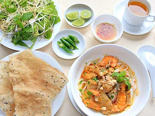 Trong số các món ăn trên, mì Quảng là món ăn được nhiều người biết nhất và có mật độ quán nhiều nhất, dày nhất. Tùy theo nguyên liệu ăn kèm mà người ta chia món ăn này thành mì Quảng gà, mì Quảng cá, mì Quảng tôm… tên gọi khác nhau, thành phần khác nhau nhưng điểm chung là món ăn hút thực khách với cái dai mềm của những cọng mì to bản, cái đậm đà của nước dùng nấu sắc cạnh, cái mặn mà của phần thịt thà để qua đêm mới ngon.