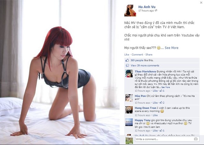 | Hà Anh chia sẻ một hình ảnh nóng bỏng trong MV trên trang cá nhân. |