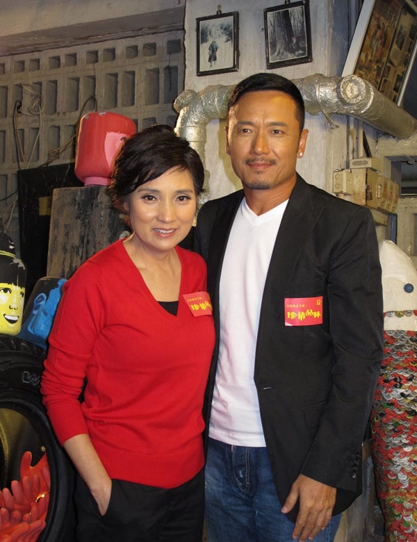 | Với Trương Quốc Vinh trong bộ phim Võ lâm cái thế. |