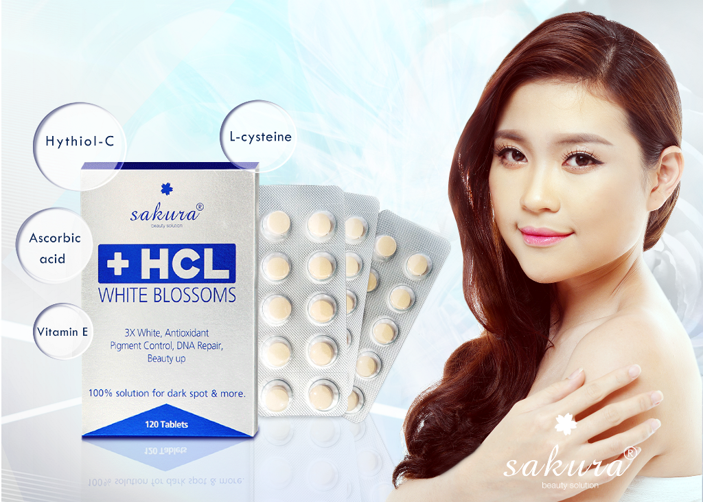 Viên uống trị nám, đốm nâu Sakura HCL White Blossoms là sản phẩm cao cấp được điều chế bằng công thức độc quyền từ Viện nghiên cứu Sakura (Nhật Bản). Hythiol C được ứng dụng vào ngăn ngừa và điều trị chuyên sâu đối với nám, tàn nhang, đốm nâu; đồng thời thải độc, trẻ hóa da hiệu quả và an toàn tuyệt đối cho người sử dụng.