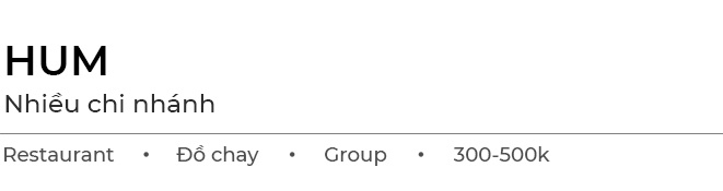 Trái ngược với P'ti Saigon, Hum là địa điểm phù hợp cho những đối tác thích không gian yên tĩnh, tao nhã, yêu thiên nhiên và đồ ăn thanh đạm. Một trong những lý do nữa tôi chọn HUM cho buổi gặp mặt đối tác vì các nhà hàng đều nằm ở quận trung tâm. Từ nhà tôi ở Bình Thạnh hay từ công ty ở quận 2 đều tiện đi lại đến các cơ sở của Hum.
