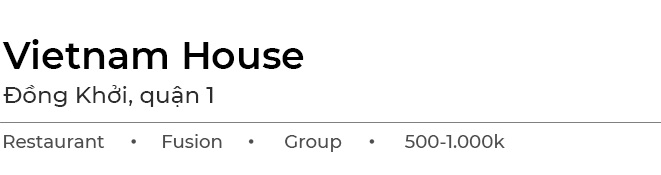Vietnam House phục vụ các món Việt theo phong cách fusion. Thực đơn nhà hàng được xây dựng bởi đầu bếp gốc Việt Luke Nguyễn.