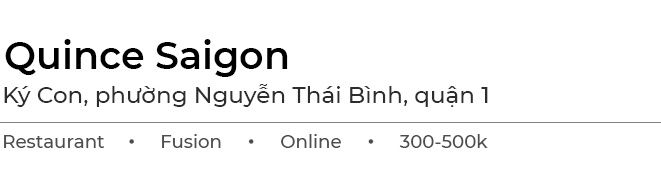 Từ ngày 28/5, nhà hàng Quince cũng thông báo ngừng nhận khách dùng bữa tại chỗ, chỉ bán mang về hoặc nhận đồ đặt online. Nhà hàng này là địa điểm lý tưởng cho thực khách yêu thích đồ Âu. Nét đặc trưng phong cách ẩm thực tại đây là các món ăn được nướng trên bếp củi.