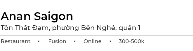 Trước khi dịch bùng phát lại, tôi có dịp đến nhà hàng này và thưởng thức những món Việt được biến tấu độc lạ. Anan Saigon là địa chỉ phù hợp cho những ai đang muốn tìm hương vị mới qua những món ăn quen thuộc.