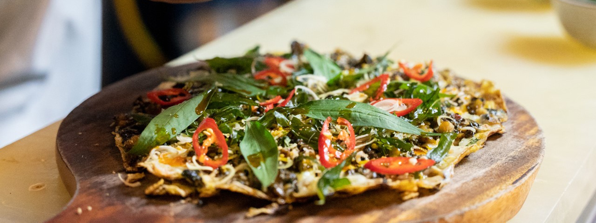 Thực đơn tại đây gồm những món nghe vừa lạ vừa quen như cơm rang bò wagyu, pizza ốc, bánh taco cá ngừ, bún chả one-shot, chả giò chay... Các món của nhà hàng được làm chỉn chu từ bước chế biến đến trang trí trước khi phục vụ thực khách. Vì thế, khi chuyển sang hình thức giao hàng, chủ nhà hàng cũng trăn trở khi quá trình đóng gói, vận chuyển có thể ảnh hưởng đến những món ăn đẹp mắt.