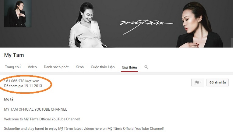| Mỹ Tâm là nữ ca sĩ sở hữu kênh chia sẻ video riêng có lượt xem "khủng". |