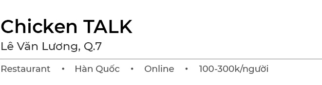 Đúng như tên gọi, Chicken TALK chuyên phục vụ món gà chế biến kiểu Hàn Quốc như rán giòn, sốt cay, phô mai, chua ngọt...