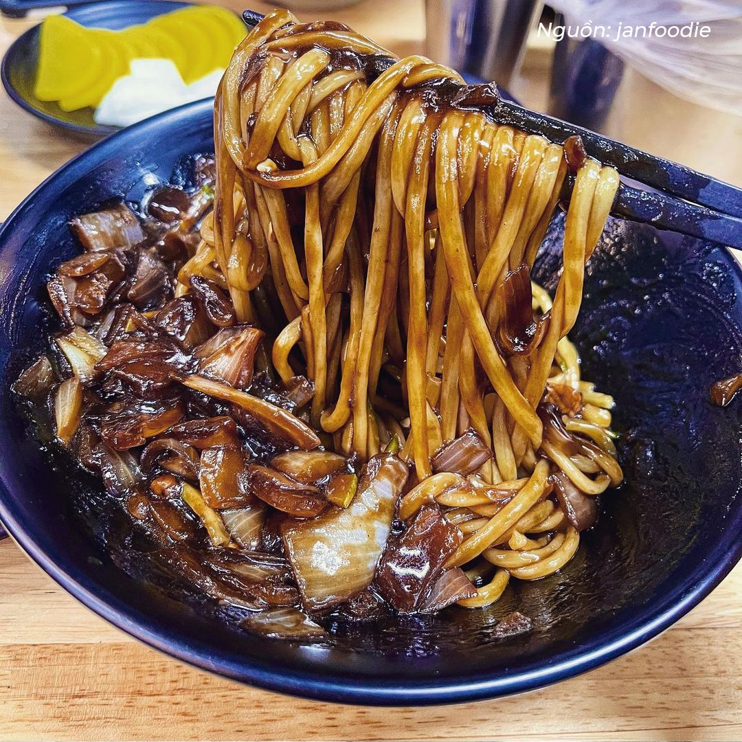 Trước khi giãn cách xã hội, tôi có ghé cùng đồng nghiệp. Không gian quán rộng nhưng bàn ghế hơi nhỏ, chỗ ngồi của khách với bếp không có vách ngăn nên mùi thức ăn len lỏi khắp quán. Phần mì tương đen khá đầy đặn, nhiều sốt và thịt ba chỉ thái nhỏ. Tương đen nêm nếm hơi ngọt nhưng không bị đắng, đối với tôi điểm trừ là có quá nhiều hành tây.