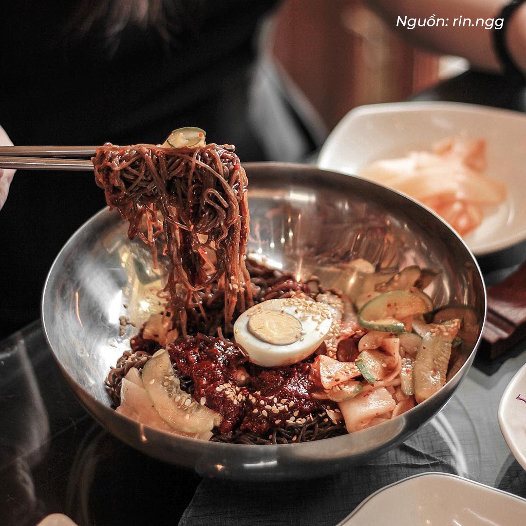 Ngoài mì lạnh, quán còn phục vụ các món truyền thống Hàn Quốc như canh chả cá, bánh xếp (mandu) hấp và đồ nướng đa dạng.