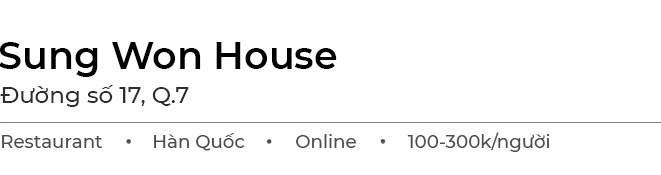 Ở tầm giá mềm hơn, Sung Won House là gợi ý dành cho bạn. Quán ăn này được nhiều người Hàn Quốc ghé thưởng thức khi đến Việt Nam.