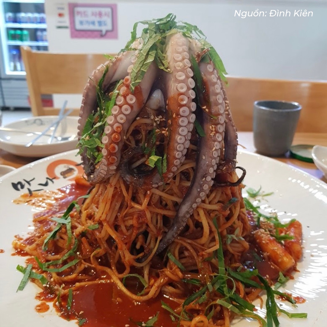 Ngoài ra, quán còn nổi tiếng với món Budae Jjigae gồm xúc xích, phô mai và nước lẩu cay truyền thống. Bạn có thể thử món PPyeo jjim với phần xương sống lợn xào giá Hàn Quốc chồng cao, đặt con bạch tuộc lên trên trông khá ấn tượng.