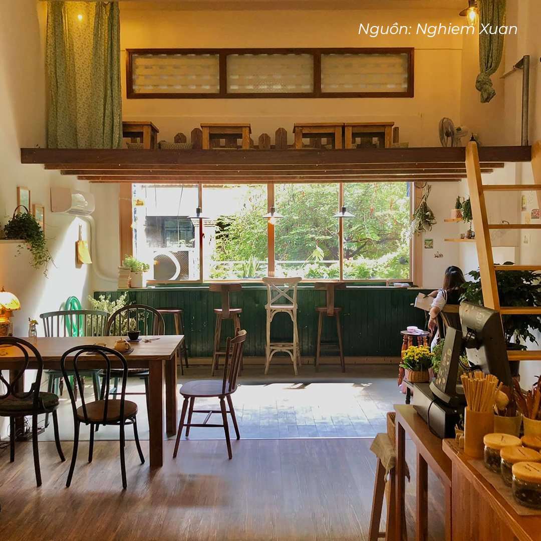 Tại đây, tôi thường lựa chọn chỗ ngồi bên cửa sổ để có thể ngắm nhìn xung quanh. Ngoài ra bạn cũng có thể chọn vị trí ở khu gác lửng hoặc ban công để hóng gió.
