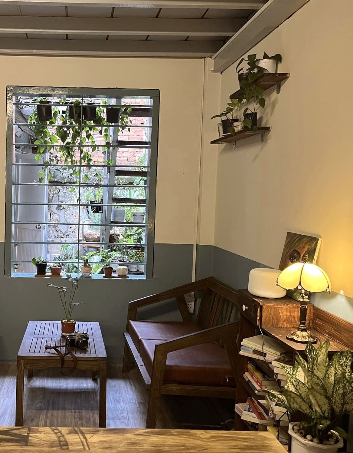 - Những buổi sáng chốn này đơn giản chỉ là vài tia nắng xuyên qua kẽ lá, vài chậu cây vừa được tưới mát. Bạn có thể chọn cho mình một góc cạnh cửa sổ, nhìn ra khoảng sân nhỏ. Chỗ ngồi bên ngoài với bàn ghế kiểu thấp là nơi phù hợp cho cuộc hẹn cà phê rôm rả hay những ai thích hóng gió trời. Không khí phía trong nhẹ nhàng, lý tưởng cho người cần tập trung chạy deadline, đọc sách. Ngoài ra, bạn cũng có thể vẽ tranh, đánh cờ vua tại tiệm.