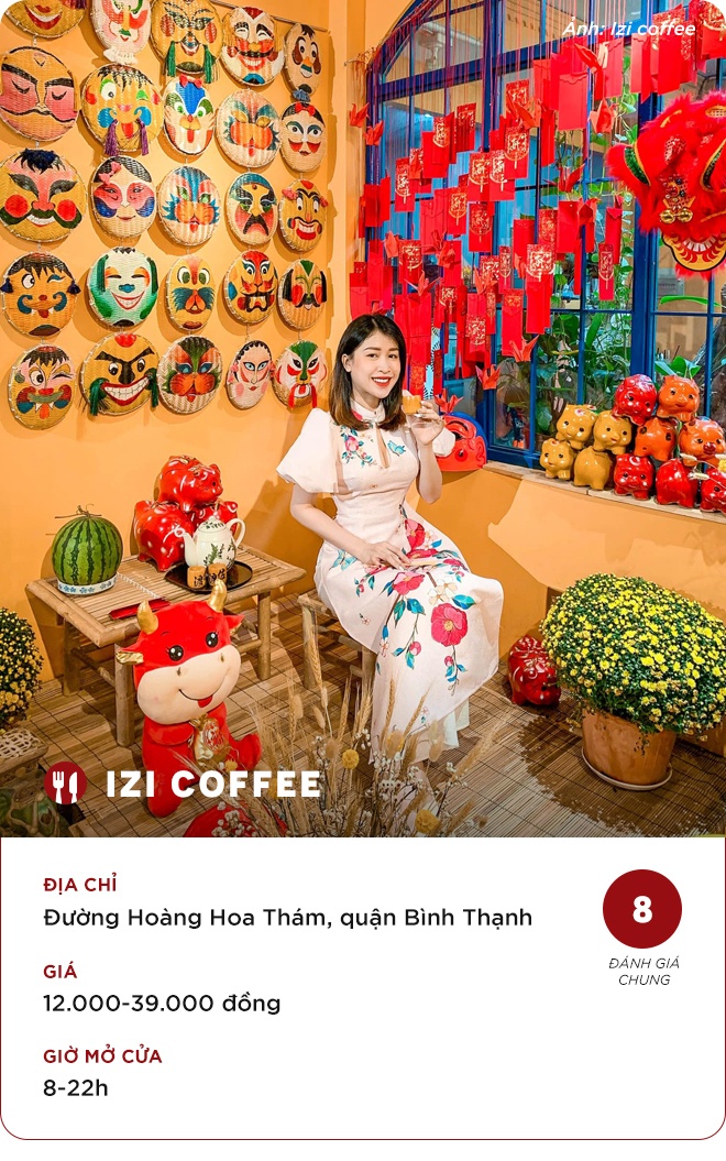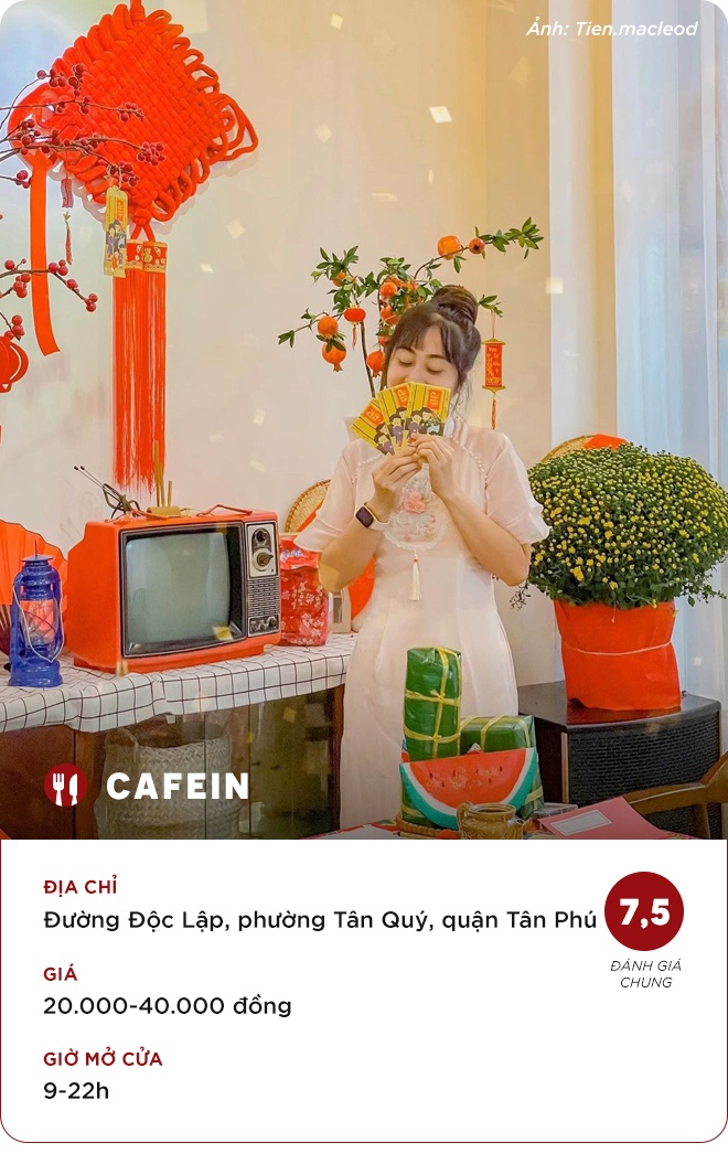 Những quán cà phê đang trở thành điểm đến thu hút giới trẻ bởi cách bài trí tràn ngập không khí Tết. Tới đây, ngoài tán gẫu cùng bạn bè, gia đình dịp cuối năm, bạn nên chuẩn bị cho mình những bộ cánh đẹp nhất để thỏa sức sống ảo với nhiều khung hình đẹp, bắt mắt mang chủ đề Tết Việt.Thực khách nhận xét: