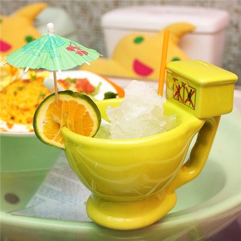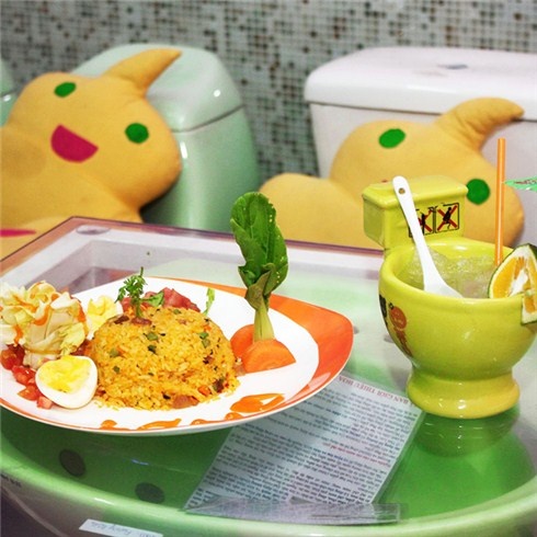 | Tuy nhiên không phải ai cũng đủ can đảm thưởng thức thức ăn hay món nước đựng trong cốc hình bồn cầu. Ảnh: Quán cung cấp. |