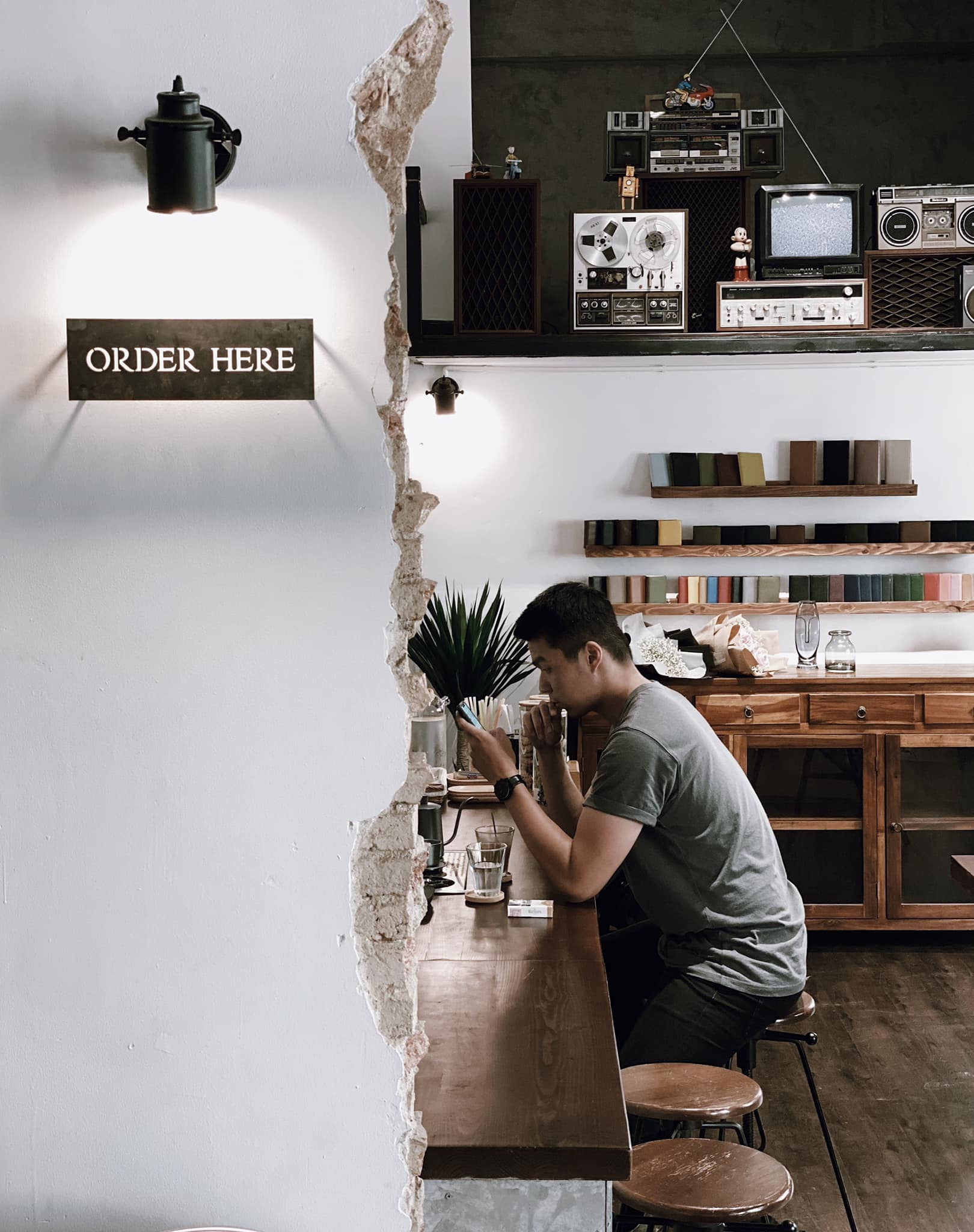 Mới khai trương không lâu, Tay Mơ Space là một trong những quán cà phê được nhiều bạn trẻ TP.HCM lựa chọn để check-in vào dịp đầu năm hay tụ tập bạn bè. Ẩn mình trong một khu chung cư cũ, không gian tại đây được bài trí theo phong cách cổ điển kết hợp với hiện đại. Những mảng tường gạch thô cũ kỹ kết hợp với nội thất gỗ chính là điểm nổi bật của quán. Ảnh: _dxn417_. |
