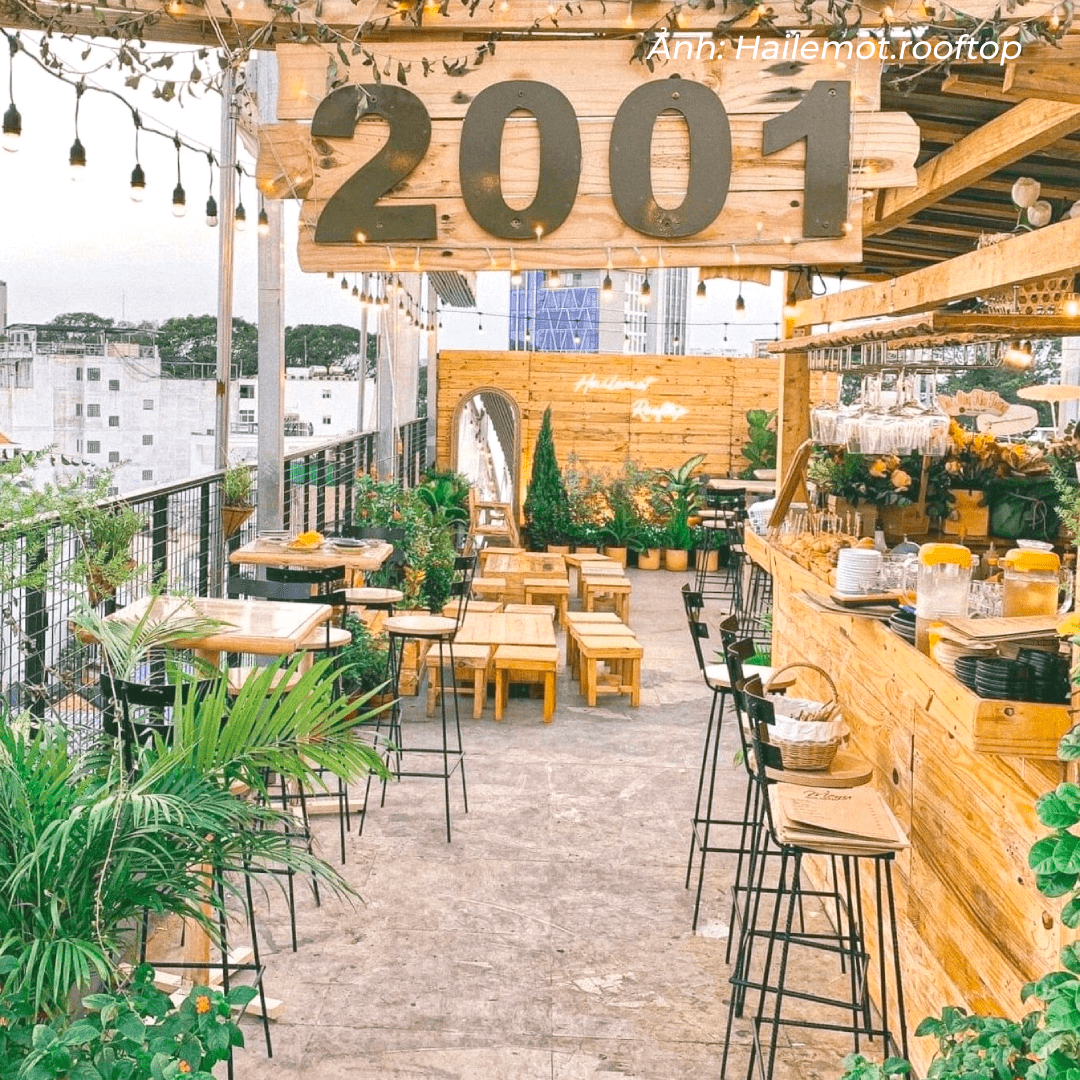 Quán nằm bình yên trên tầng thượng thuộc lầu 6, mang không khí tựa Đà Lạt (Lâm Đồng). Với view đắc địa, khách ghé nơi này có thể ngắm tòa Bitexco lẫn Landmark 81. Ngoài ra, bạn cũng dễ dàng chiêm ngưỡng nhà thờ Tân Định và nghe tiếng chuông ngân.