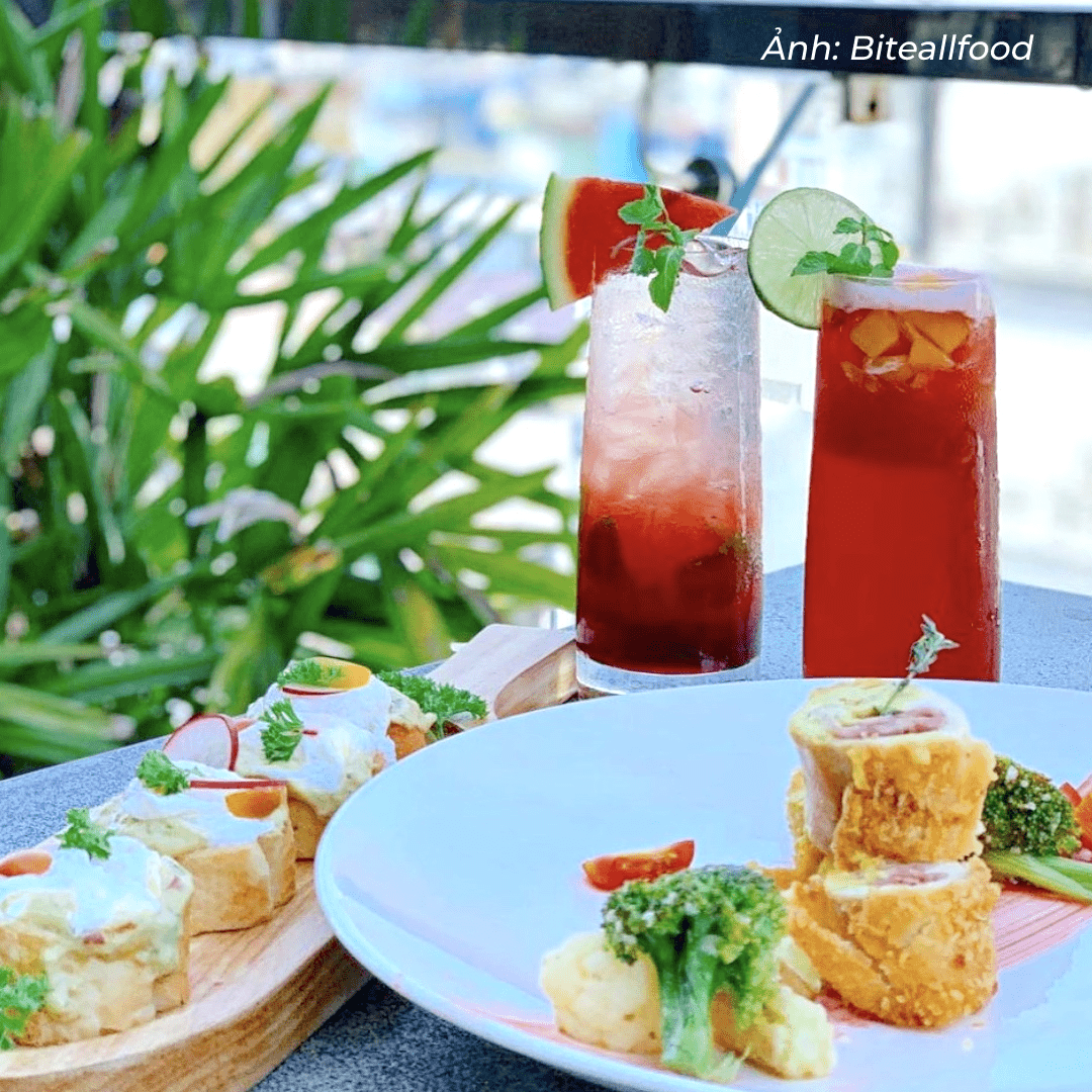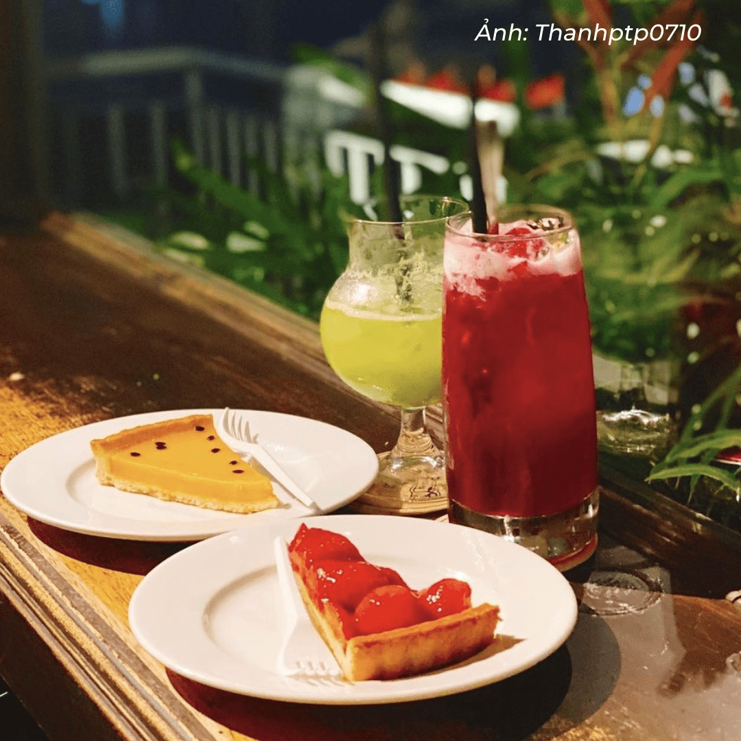 Điều tôi cảm thấy hài lòng nhất tại đây là nhân viên thân thiện. Thức uống được phục vụ với ly cao, vị đa dạng. Tôi chọn một ly mocktail dưa hấu thanh mát. Trà vải cũng được bạn tôi đánh giá ngọt ngào, dễ uống. Đồ uống giá 55.000 đồng/ly. Nếu đi đúng buổi có đêm nhạc, quán phụ thu 30.000 đồng. Thực đơn còn có nhiều món vặt, phù hợp cho hội bạn vừa hàn huyên, vừa lai rai.